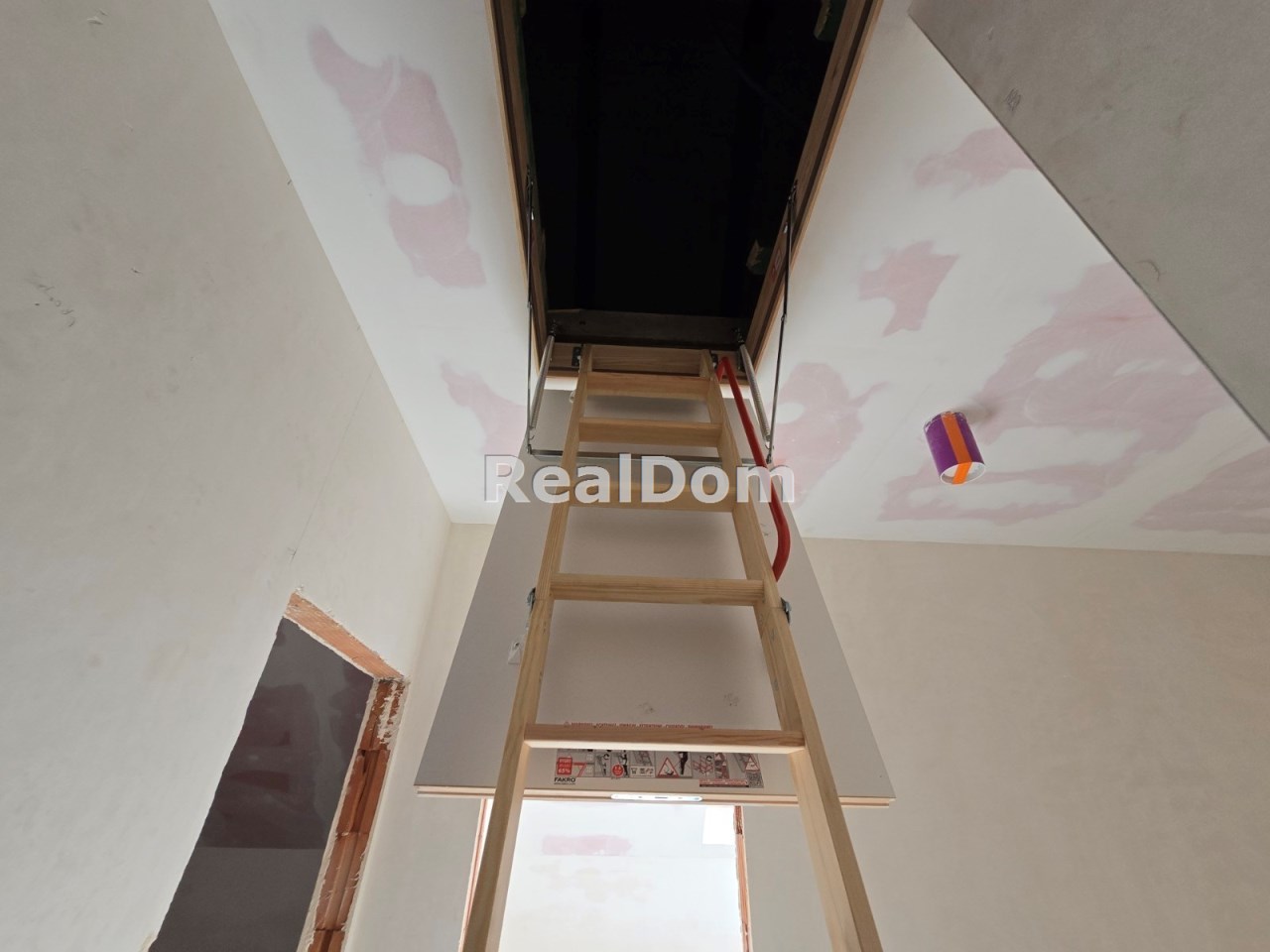 Dom posiada 2 poziomy, 5 pokoi, 2x łazienki i dodatkową powierzchnię na strychu.