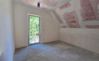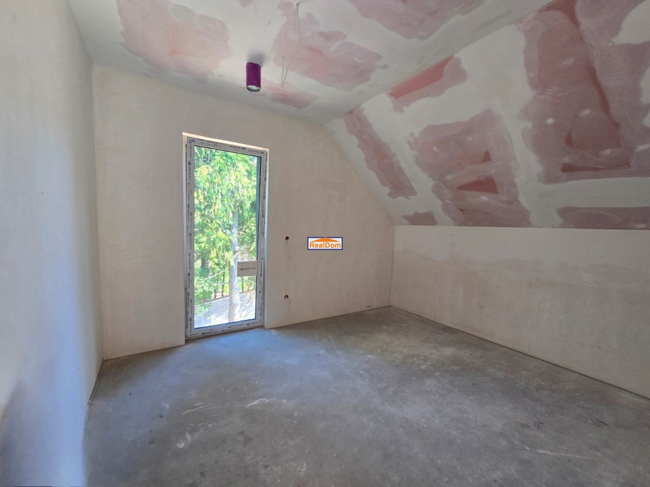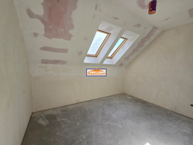 Dom posiada 2 poziomy, 5 pokoi, 2x łazienki i dodatkową powierzchnię na strychu.