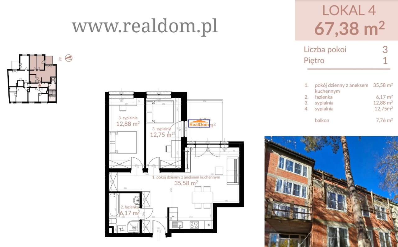 Mieszkania o różnych powierzchniach w Sercu Krowodrzy.Mieszkanie nr 3 pow 67,38 m2 ,piętro 1 - 3 pokoje, pokój dzienny ma ponad 35 m2 powierzchni, balkon ok 8 m2.