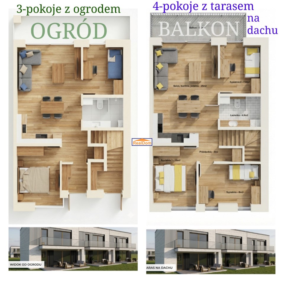 Zapytaj o 4 pokoje z tarasem.